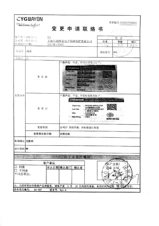 CGY WAYON維安原廠標(biāo)簽更改事宜2017-03-17